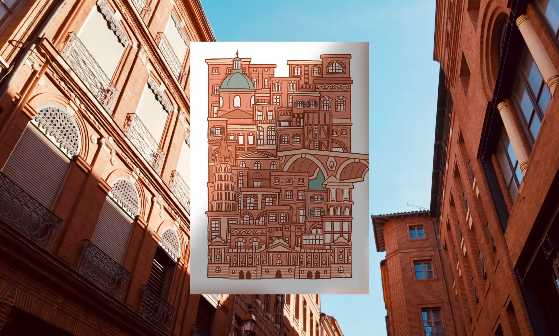 Découvrez l’illustration O'Toulouse, une représentation artistique et détaillée de la ville rose. Ce visuel capture avec précision les charmes architecturaux et culturels de Toulouse, mêlant authenticité et finesse graphique. Parfaite pour les amateurs d'art urbain, cette illustration met en valeur les monuments emblématiques et l’atmosphère unique de la ville, invitant à un voyage visuel au cœur de la région occitanienne. Un choix idéal pour sublimer vos espaces tout en témoignant de votre attachement à Toulouse.